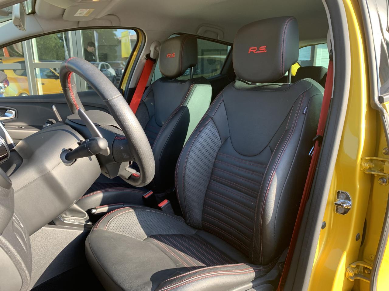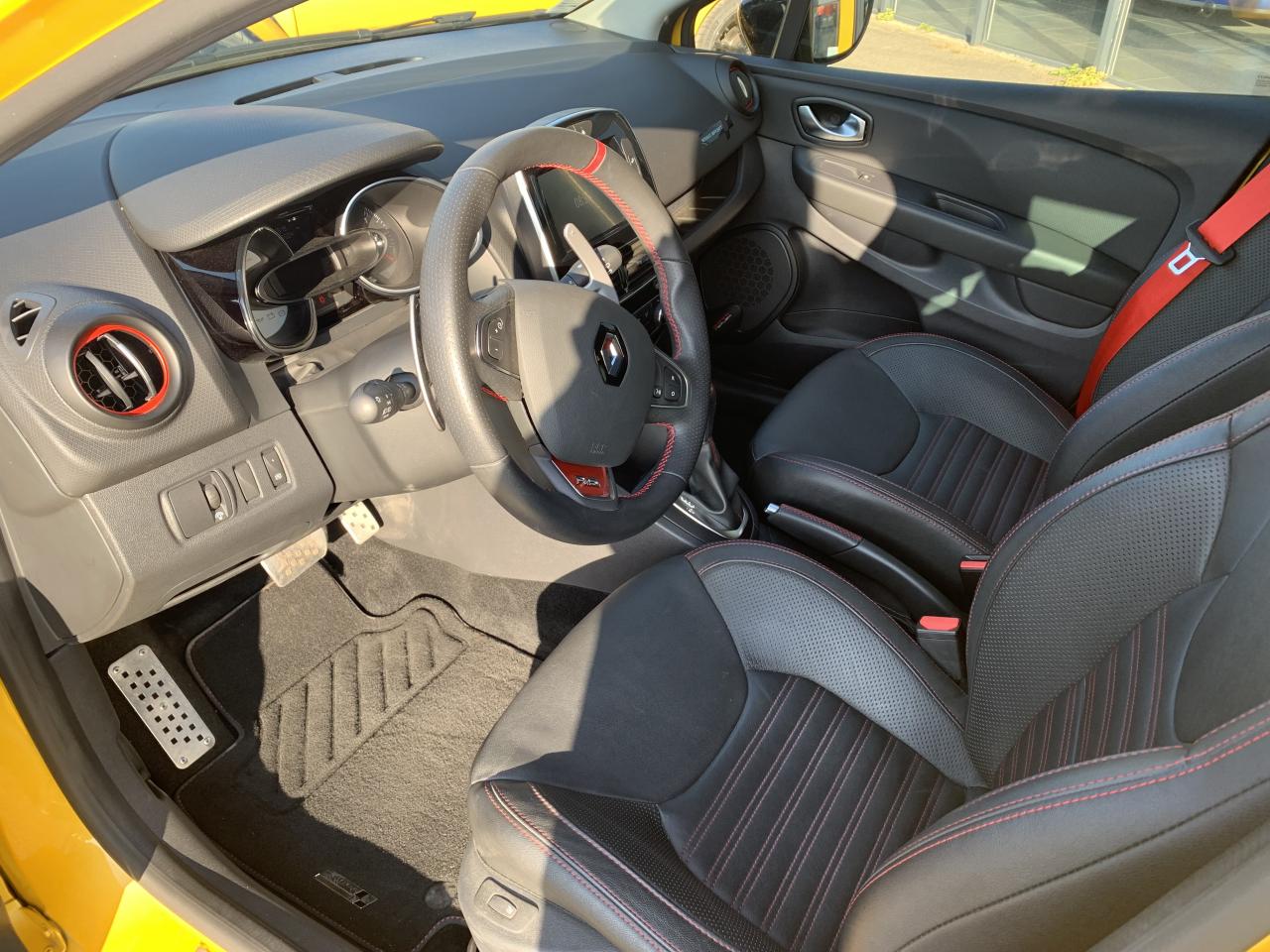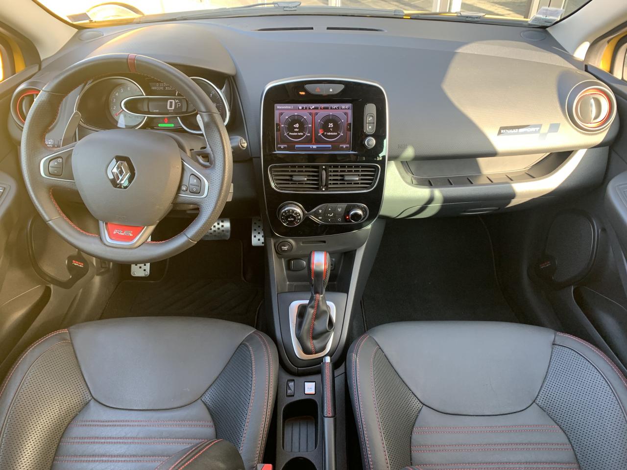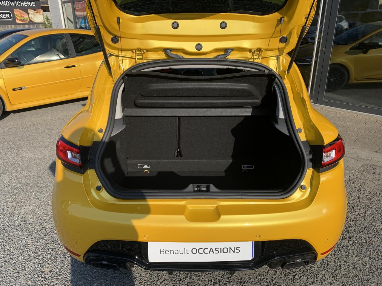 Airbags frontaux et latéraux conducteur et passager déconnectables2 appuis-tête avant réglables en hauteur, avec marquage R.SABS et Assistance au Freinage d'Urgence (AFU)Aide au démarrage en côteAide au stationnement arrièreAlerte de ceinture de sécurité conducteur et passagerAnimation intérieure Renault Sport, harmonie Rouge (aérateurs, levier de vitesse, frein à main)Badging « R.S. renault sport » sur bas de hayon arrière droitBadging R.S. sous logo de face avantBanquette arrière rabattable 1/3-2/3 avec 3 appuis-tête réglables en hauteurBas de caisse spécifique (bavolets)Becquet Renault SportBoîte à gants fermable (volume 7 L)Bouclier ton caisse avec lame F1 dark métal brillantButées de compression hydrauliqueCapteurs de pluie et de luminositéCarte Renault mains-libres (accès, démarrage, condamnation à l'éloignement)Ceintures de sécurité rougesChâssis TrophyClimatisation régulée avec filtre combiné pollen / charbon actifCondamnation automatique des ouvrants en roulantCoques de rétroviseurs noir grand brillantDifférentiel électronique R.S. DiffDiffuseur arrière dark métal brillantDirection assistée électrique à assistance variableEclairage additionnel LED R.S. Vision (fonction cornering, antibrouillard, longue portée et feux de position)Essuie-vitre à cadencementEssuie-vitre arrière à enclenchement marche arrièreEtriers de frein rougesFeux arrière avec signature lumineuse à LEDFond de compte-tours spécifique Renault SportHarmonie Carbone FoncéDouble canule d'échappement Carbone badgée AkrapovicIndicateur de changement de vitessesInsert Rouge avec cerclage chromé et marquage R.S. sur volantJantes alliage 18’’ R.S. Noir BrillantJoncs de portières Dark MetalJupe de bouclier arrière noir Grand brillantKit gonflage de réparationLève-vitres avant et arrière électriques, impulsionnel côté conducteurLevier de vitesse avec fonction impulsionnelleLigne d’échappement AkrapovicMarquage « Renault Sport » sur bas de hayon arrière gaucheMarquage « Trophy » sur jonc de portièresMontants de pied milieu Noir Grand BrillantOrdinateur de bordPack R-Link EvolutionPalettes de passages de rapports au volant dark métalPare-soleil conducteur et passager avec miroir de courtoisiePatins de pédales et repose-pied en aluminiumPneumatiques perfo Michelin Pilot Super SportPoignée de frein à main en cuir avec surpiqûres RougePoignées de maintien passager avant et arrière rabattablesProjecteurs Full LED Pure Vision avec signature lumineuseProtections inférieures de portes ton caisseProtections latérales de porte ton caisseR.S. drive (3 modes : normal, sport, race)Rangement nomadeRégulateur et limiteur de vitesseRétroviseurs extérieurs électriques et dégivrantsRétroviseurs extérieurs noir brillantRétroviseurs rabattables électriquement et automatiquement avec répétiteur de clignotant à LEDSellerie cuir RS Carbonne foncéSeuil de porte aluminium avec marquage renault sportSiège conducteur réglable en hauteurSiège passager réglable en hauteurSièges avant chauffantsSystème de contrôle de trajectoire (ESP) et système antipatinage (ASR)Système de surveillance de la pression des pneusSystème Isofix aux places latérales ARSystème Stop & StartVitres arrières surteintéesVolant cuir spécifique Renault Sport avec surpiqûres Rouge et repère Rouge du Point ZéroVolant réglable en hauteur et en profondeur