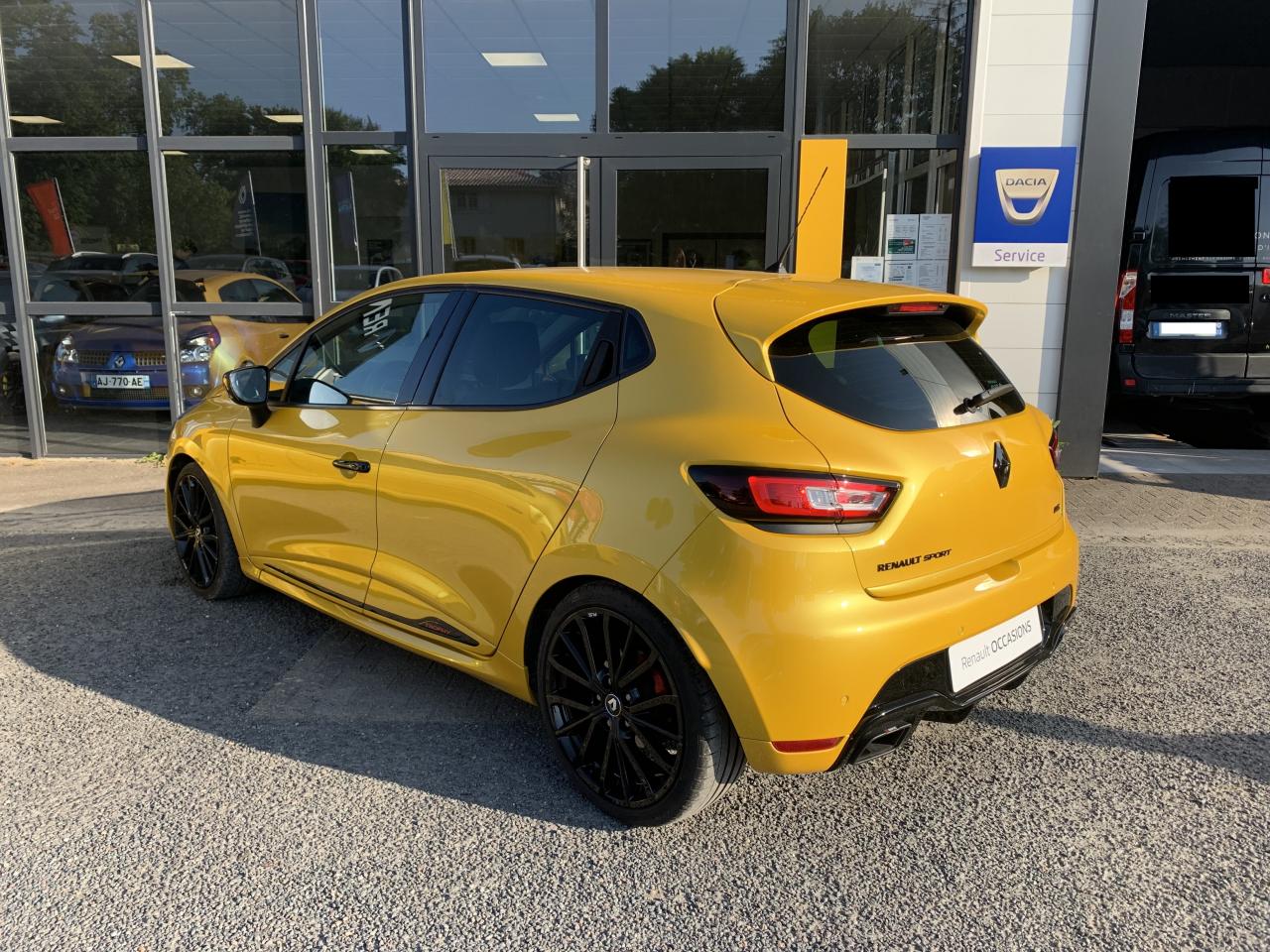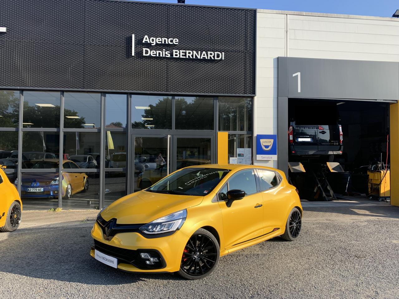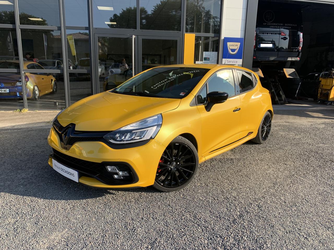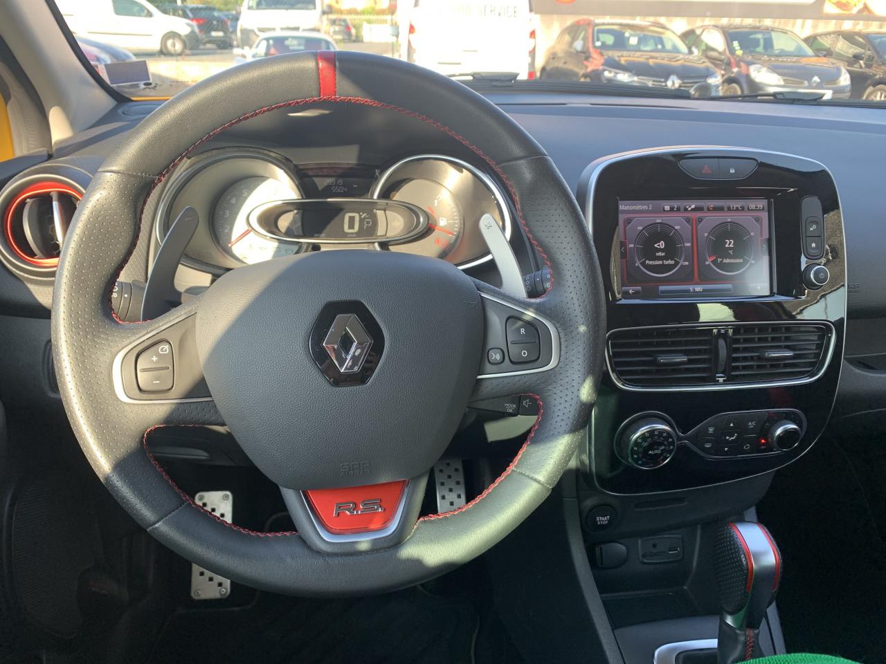 Airbags frontaux et latéraux conducteur et passager déconnectables2 appuis-tête avant réglables en hauteur, avec marquage R.SABS et Assistance au Freinage d'Urgence (AFU)Aide au démarrage en côteAide au stationnement arrièreAlerte de ceinture de sécurité conducteur et passagerAnimation intérieure Renault Sport, harmonie Rouge (aérateurs, levier de vitesse, frein à main)Badging « R.S. renault sport » sur bas de hayon arrière droitBadging R.S. sous logo de face avantBanquette arrière rabattable 1/3-2/3 avec 3 appuis-tête réglables en hauteurBas de caisse spécifique (bavolets)Becquet Renault SportBoîte à gants fermable (volume 7 L)Bouclier ton caisse avec lame F1 dark métal brillantButées de compression hydrauliqueCapteurs de pluie et de luminositéCarte Renault mains-libres (accès, démarrage, condamnation à l'éloignement)Ceintures de sécurité rougesChâssis TrophyClimatisation régulée avec filtre combiné pollen / charbon actifCondamnation automatique des ouvrants en roulantCoques de rétroviseurs noir grand brillantDifférentiel électronique R.S. DiffDiffuseur arrière dark métal brillantDirection assistée électrique à assistance variableEclairage additionnel LED R.S. Vision (fonction cornering, antibrouillard, longue portée et feux de position)Essuie-vitre à cadencementEssuie-vitre arrière à enclenchement marche arrièreEtriers de frein rougesFeux arrière avec signature lumineuse à LEDFond de compte-tours spécifique Renault SportHarmonie Carbone FoncéDouble canule d'échappement Carbone badgée AkrapovicIndicateur de changement de vitessesInsert Rouge avec cerclage chromé et marquage R.S. sur volantJantes alliage 18’’ R.S. Noir BrillantJoncs de portières Dark MetalJupe de bouclier arrière noir Grand brillantKit gonflage de réparationLève-vitres avant et arrière électriques, impulsionnel côté conducteurLevier de vitesse avec fonction impulsionnelleLigne d’échappement AkrapovicMarquage « Renault Sport » sur bas de hayon arrière gaucheMarquage « Trophy » sur jonc de portièresMontants de pied milieu Noir Grand BrillantOrdinateur de bordPack R-Link EvolutionPalettes de passages de rapports au volant dark métalPare-soleil conducteur et passager avec miroir de courtoisiePatins de pédales et repose-pied en aluminiumPneumatiques perfo Michelin Pilot Super SportPoignée de frein à main en cuir avec surpiqûres RougePoignées de maintien passager avant et arrière rabattablesProjecteurs Full LED Pure Vision avec signature lumineuseProtections inférieures de portes ton caisseProtections latérales de porte ton caisseR.S. drive (3 modes : normal, sport, race)Rangement nomadeRégulateur et limiteur de vitesseRétroviseurs extérieurs électriques et dégivrantsRétroviseurs extérieurs noir brillantRétroviseurs rabattables électriquement et automatiquement avec répétiteur de clignotant à LEDSellerie cuir RS Carbonne foncéSeuil de porte aluminium avec marquage renault sportSiège conducteur réglable en hauteurSiège passager réglable en hauteurSièges avant chauffantsSystème de contrôle de trajectoire (ESP) et système antipatinage (ASR)Système de surveillance de la pression des pneusSystème Isofix aux places latérales ARSystème Stop & StartVitres arrières surteintéesVolant cuir spécifique Renault Sport avec surpiqûres Rouge et repère Rouge du Point ZéroVolant réglable en hauteur et en profondeur