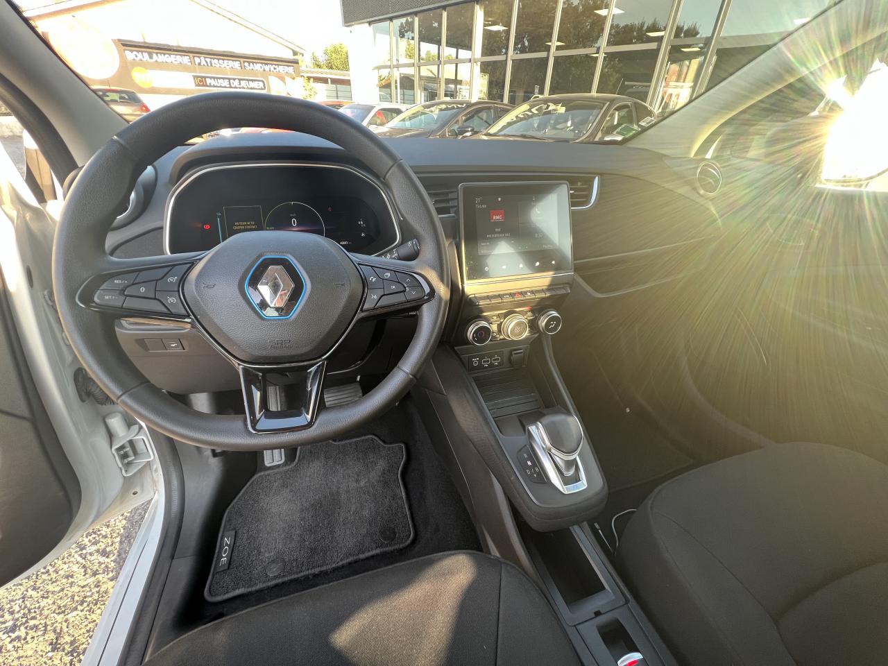 2 appuie-têtes arrière latéraux réglables en hauteur2 prises USB et prise Aux-In6 haut-parleursABS avec Assistance au Freinage d'UrgenceAide au démarrage en côteAirbags frontaux et latéraux conducteur et passagerAllumage automatique des feux de détresse en cas de freinage d'urgenceAllumage automatique des feux et des essuie-vitresBandeau de planche de bord en tissu noirBanquette arrière 1/1BatterieBluetoothBoîte à gants à portillon freinéBoîte automatique à rapport unique (réducteur)Bouton sur volant pour commande vocaleCâble de recharge Flexi Charger (6,5 m) pour prise Green Up Access et prises domestiquesCapteur de qualité de l'airCarte Renault, accès et démarrage « mains-libres »Chargeur Caméléon adaptatif mono-triphasé jusqu’à 22 KWClignotants défilants à l'arrièreClimatisation manuelleCondamnation automatique des ouvrants en roulantContrôle dynamique de trajectoire (ESP) avec fonction antipatinage (ASR) et contrôle de sous-virage (CSV)Coques de rétroviseurs noir grainéEASY LINK, écran multimédia 7”, compatible Android Auto et Apple CarPlayEconomètre, jauge batterie et compteur kilométrique intégrés au tableau de bordEnjoliveurs 15’’ Eole avec pneus 15’’Feux arrière LEDFeux de jour à LED avec signature lumineuse en forme de "C"Frein de parking électrique avec fonction Auto-HoldHarmonie noirLève-vitres avant électriquesLevier de vitesse e-Shifter avec mode BLevier de vitesse en cuirLimiteur et régulateur de vitesse avec commandes au volantPeinture Violet BlueberryPneumatiques Michelin Primacy 4-EPoignées de portes ton caisseProgrammation de la charge et de la climatisation depuis le système multimédia EASY LINKProgramme Eco-modeProjecteurs avant Full Led Pure VisionRadio Numérique DABRangement bouteille 1,5 l dans portes avantRétroviseur intérieur électrochromeRétroviseurs extérieurs électriques et dégivrantsSellerie tissu Fortunate NoirService Auto-Update - 3 ans inclusServices connectés depuis l’application MY Renault: état de charge, préconditionnement de l’habitacle, planificateur de trajetSon de prévention piéton Z.E. VoiceSystème de surveillance de la pression des pneusSystème Isofix aux places latérales arrière et passager avantTableau de bord numérique 10’’ personnalisableVéhicule connecté 4G avec pack de données inclus pendant 3 ansVolant réglable en hauteur et en profondeur